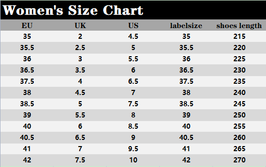 Note: If you have wider feet, it is recommended to buy one size larger.